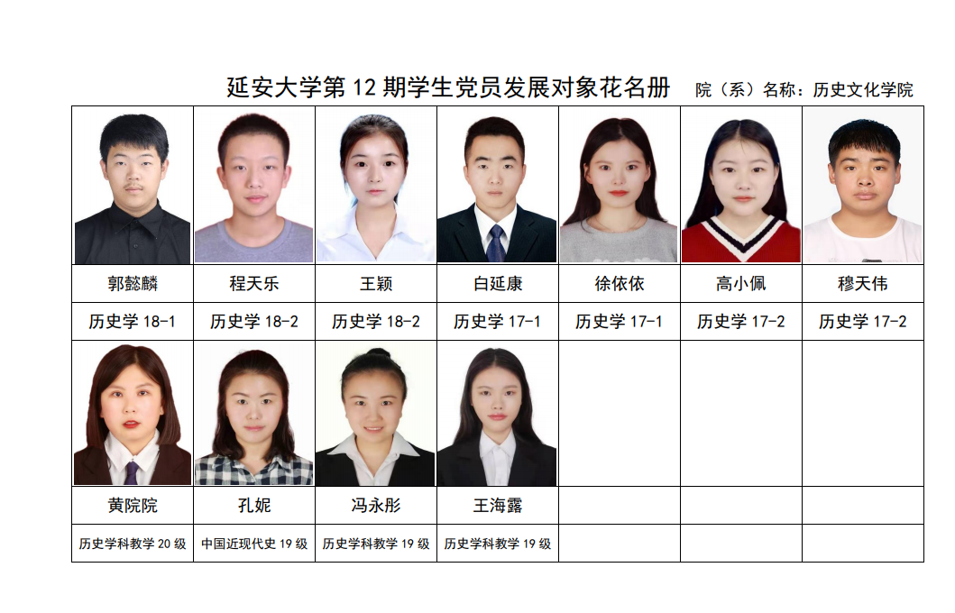 根据《中国共产党员发展细则》和公司《关于举办第12期党员发展对象培训班的通知》要求,经班级推优、民主测评、班主任推荐、公司党支部考试答辩选拔,公司党委研究审核,拟推荐以下同学为公司第12期党员发展对象。如有异议,请于12月5日下午6点前向211办公室反馈。