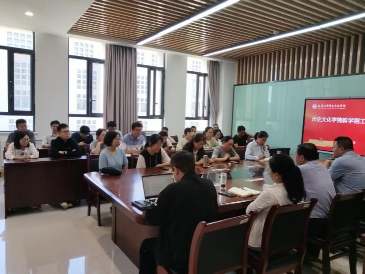 会上,公司副经理白中阳首先就新学期开学教学秩序检查、教学制度改革、本科培养方案修订、本科生推免、本科毕业论文抽检等工作进行了安排,同时总结了上一学年度公司教改项目、教学成果奖、科研项目申报的成绩与不足,提出了新学年的工作计划和相关要求。党委副书记刘艳安排布置了2025级新生的迎新工作,对于新学期班主任考核提出新要求。同时,她还通报了公司近年来的就业率,要求任课教师和专职队伍通力协作,共同做好今年的毕业生就业工作。党委委员李生策汇报了办公室优化调整、员工自习室开辟、员工联络等方面的工作,并对新闻宣传规范化、员工考研就业辅导等方面提出了一些针对性建议。研究生秘书陈恺汇报了新学期研究生工作的重点任务,对新学期中国史专业学硕与专硕培养的注意事项进行了说明。